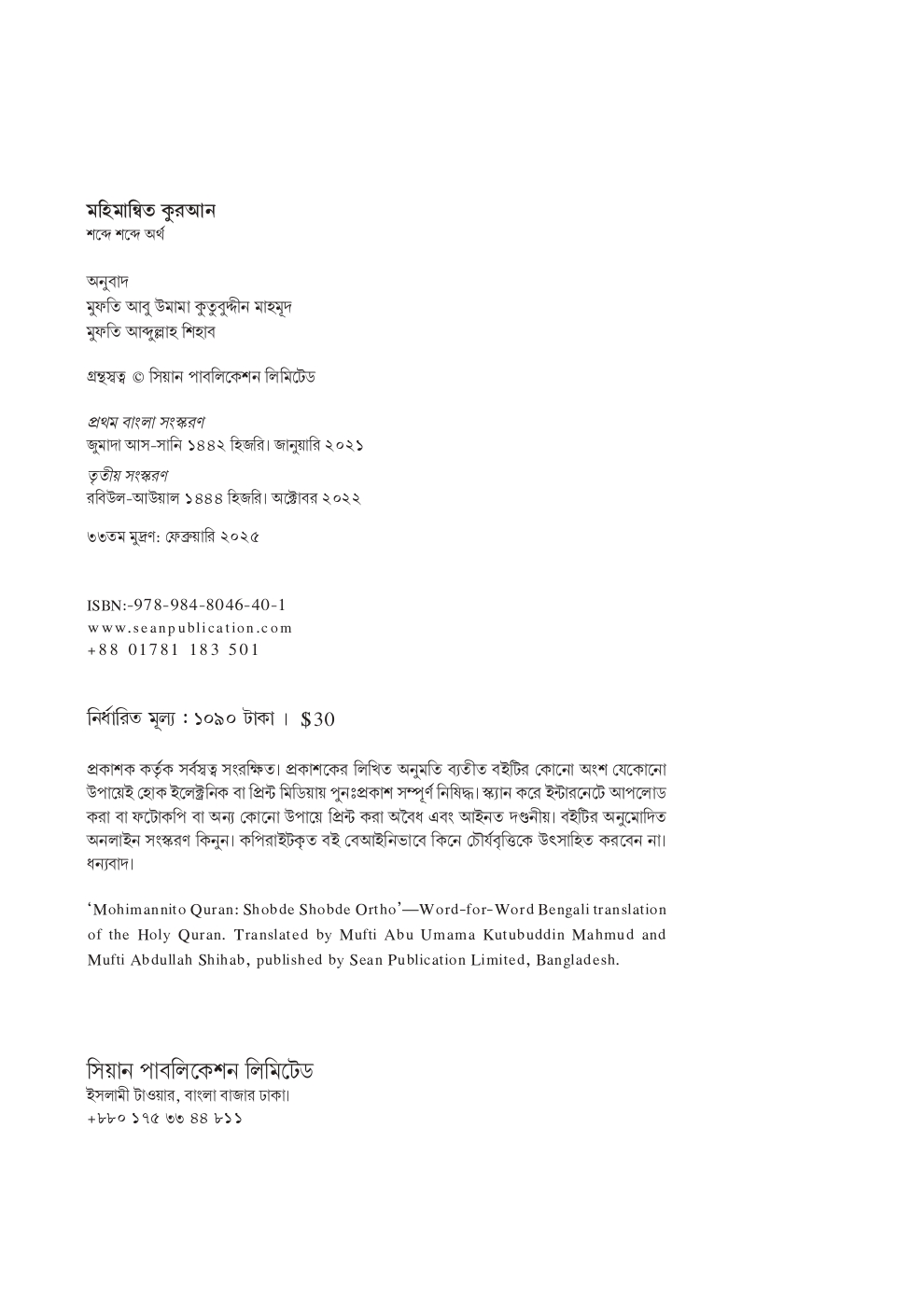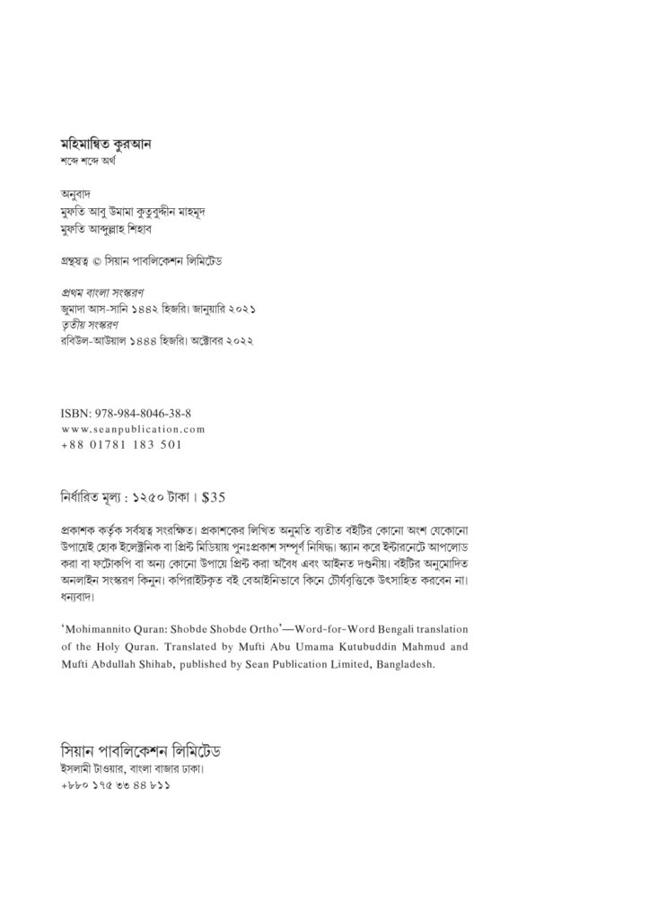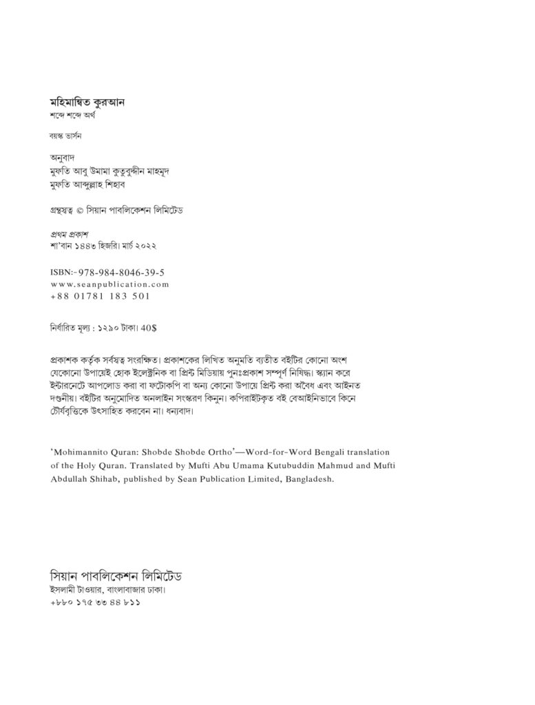 গ্রন্থটি আমাদের আজীবন সাথি। তাই উন্নত মানের কাগজ, ঝকঝকে ছাপা, সুপরিকল্পিত পেইজ সেটাপ ব্যবহার করে সুন্দর, আকর্ষণীয় ও সহজে বহনযোগ্য করা হয়েছে।